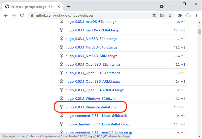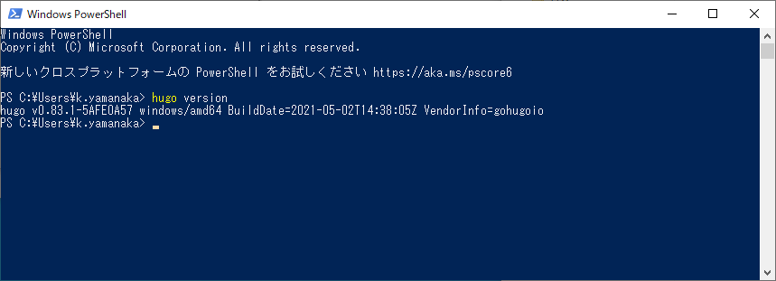 ※最新のインストール方法は hugoのサイト をご確認ください。