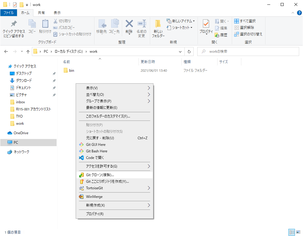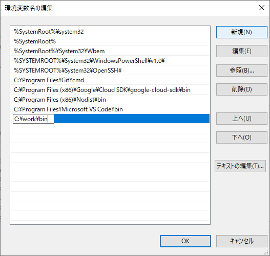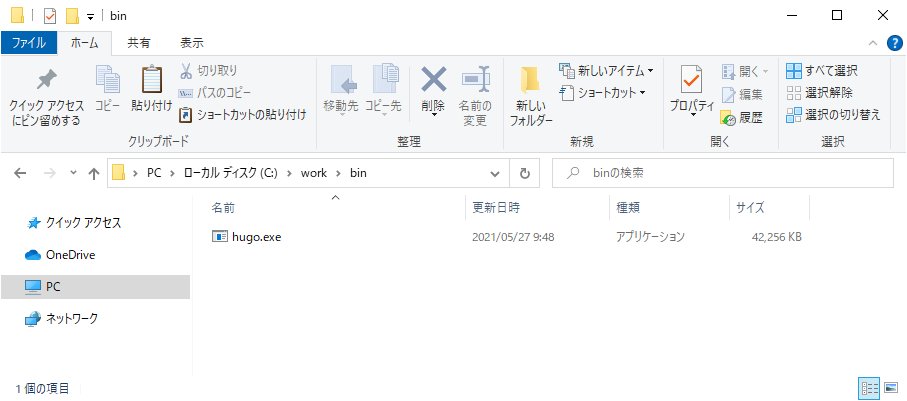 ダウンロードしたzipを解凍し、exeファイルをC:\work\binに保存します。