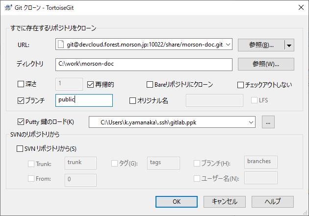 git clone -b public --recursive ssh://git@devcloud.forest.morson.jp:10022/share/morson-doc.git
