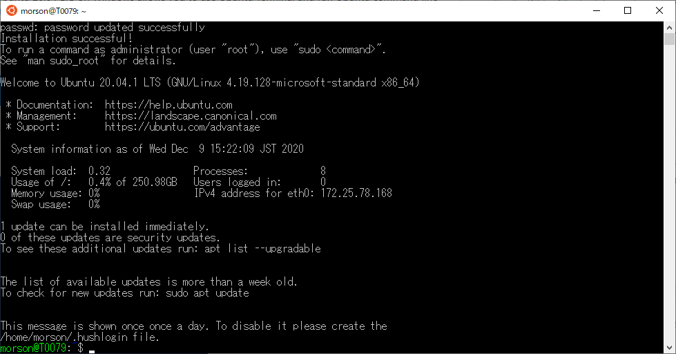 ※初めてsshする際はknown listへの追加を聞かれますのでyesとしてください。