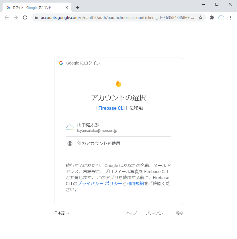 ブラウザが開くのでご自身のGoogleアカウントで認証してください。