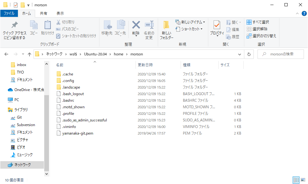 ※保存場所はUbuntuをインストールした際のユーザーのホームディレクトリにしてください。(例では¥¥wsl$¥Ubuntu-20.04¥home¥morson)