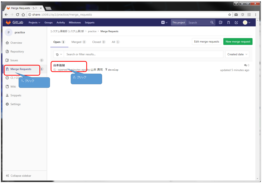 - Merge Requestを開く