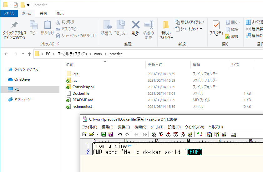 PowerShellを開き、Dockerfileを置いたディレクトリに移動して、ビルドします。