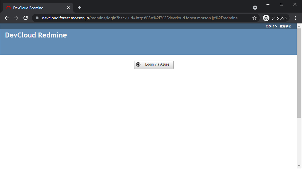 ログイン画面にアクセスできたら「Login via Azure」ボタンをクリックして、