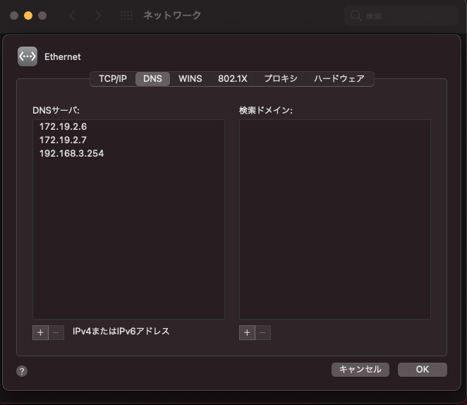 社内ネットワーク用のDNSサーバーのアドレスは以下です。