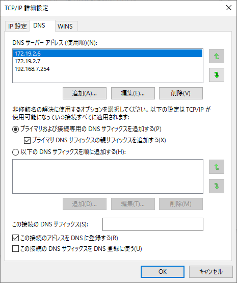 IPv4参照用DNSサーバ(セカンダリ): 172.19.2.7